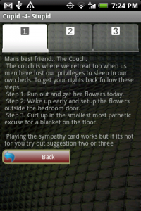 Cupid -4- Stupid is an application geared for men. This mobile application helps you to remember more than just her chest size – it keeps you out of the doghouse. It coaches you in your relationship and gives you a hand during those conflicting times. This is the perfect tool for those who are married or single. If you are a man, then this application is a must have.